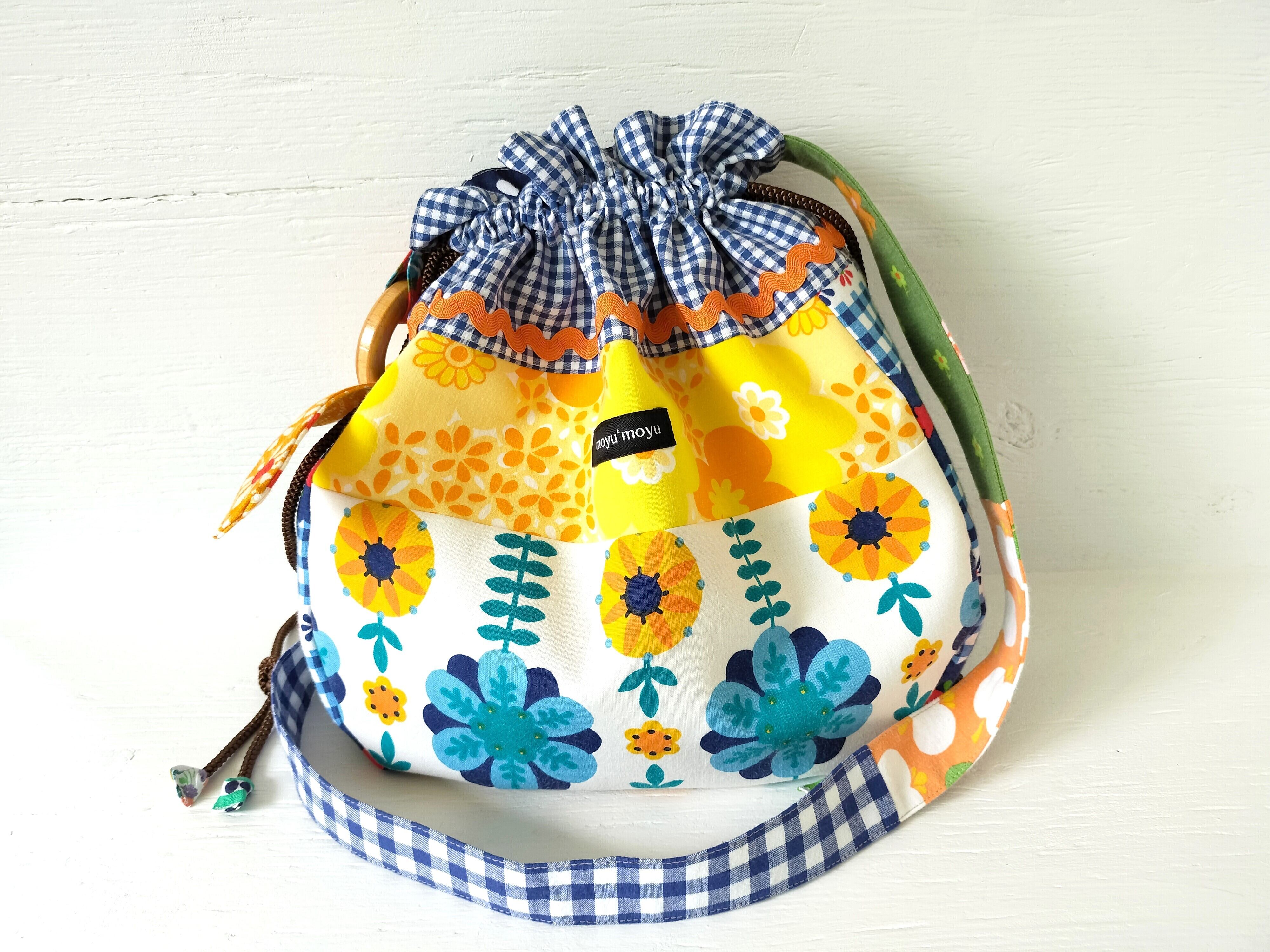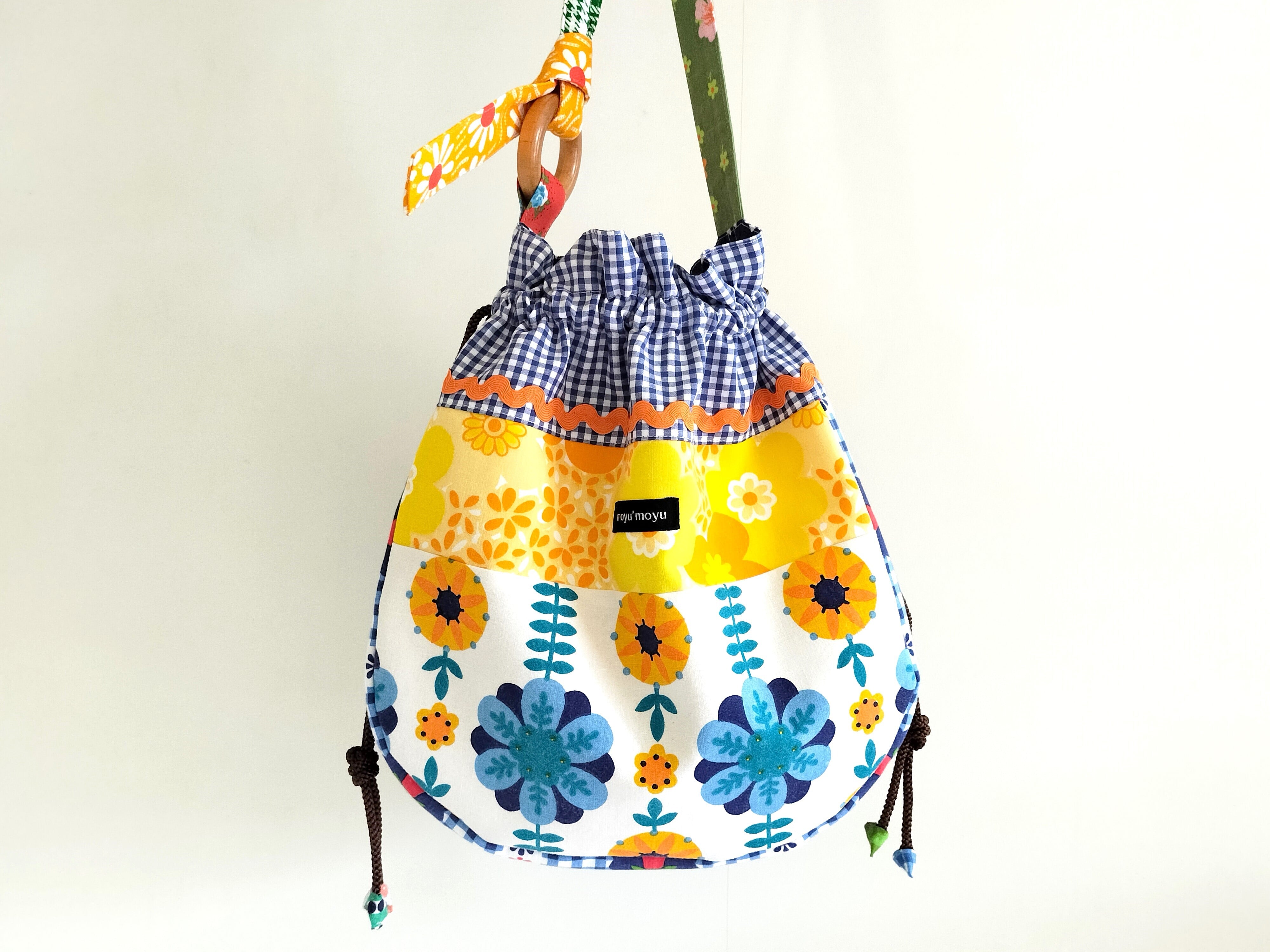 ヨーロッパのヴィンテージファブリックを使って、お出かけが楽しくなる♩きんちゃくバッグを作りました。