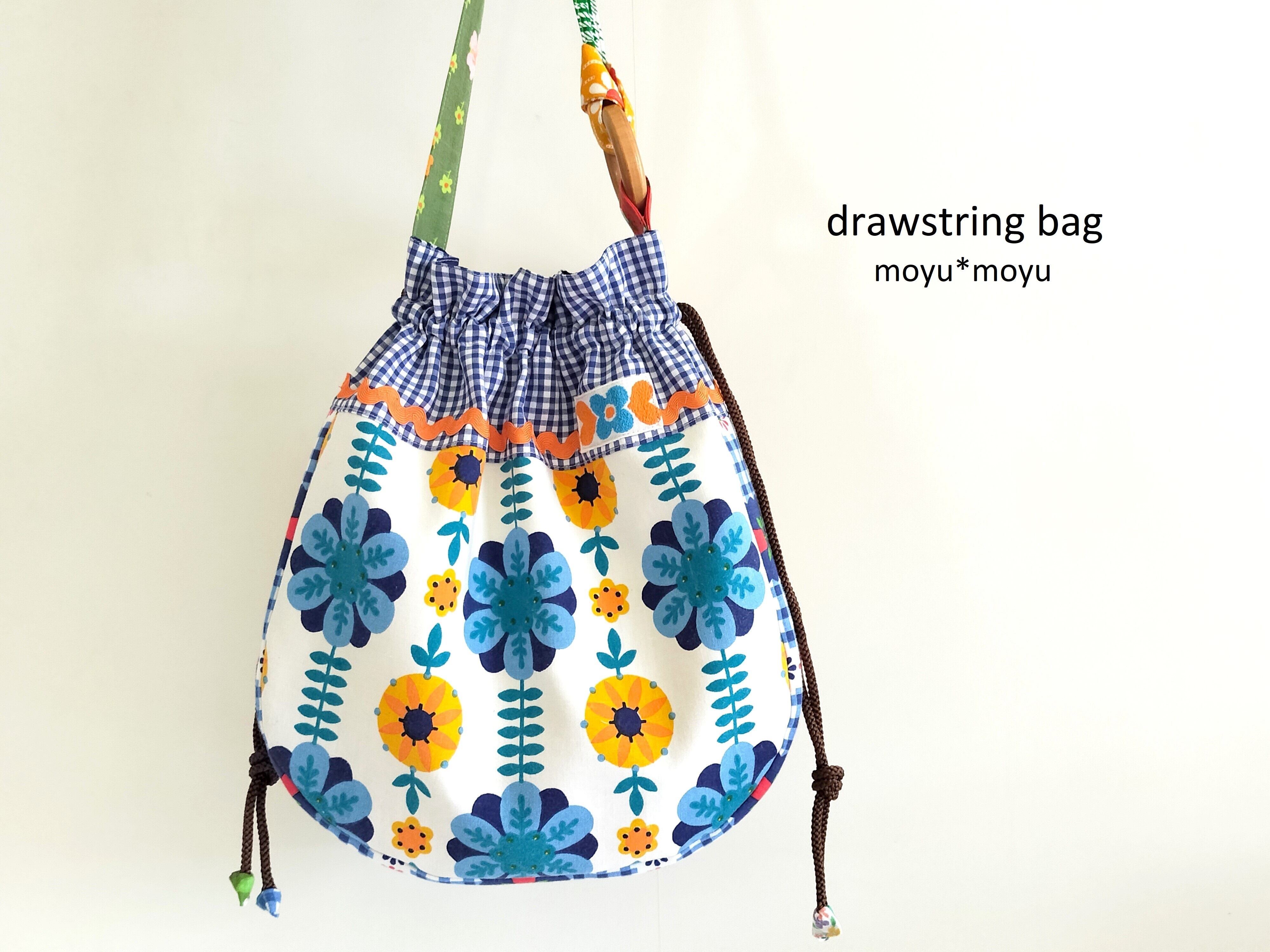お出かけきんちゃくバッグ *ヴィンテージ ブルーギンガムチェック*