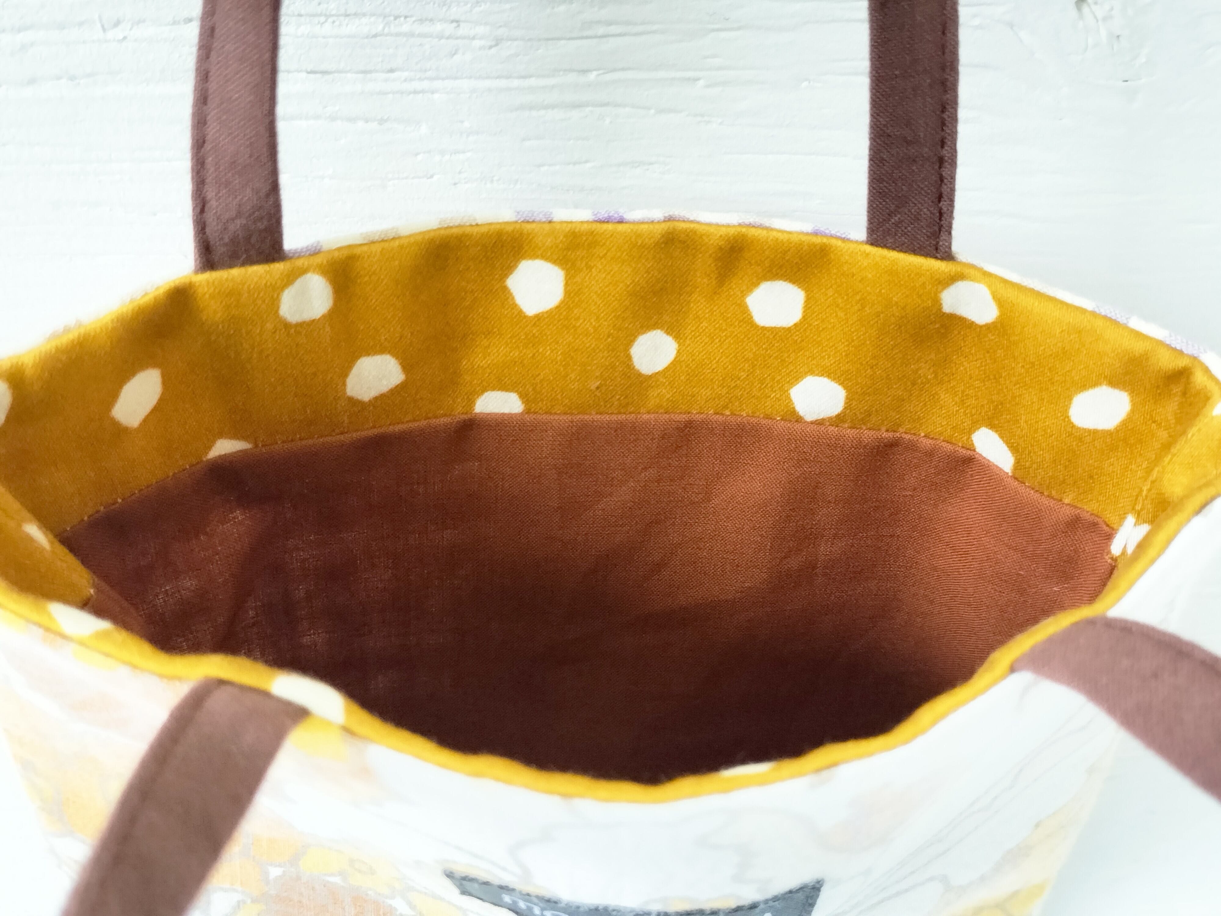ヨーロッパのヴィンテージファブリックと、サッカー織のイタリア製の生地とを合わせたバッグ。
