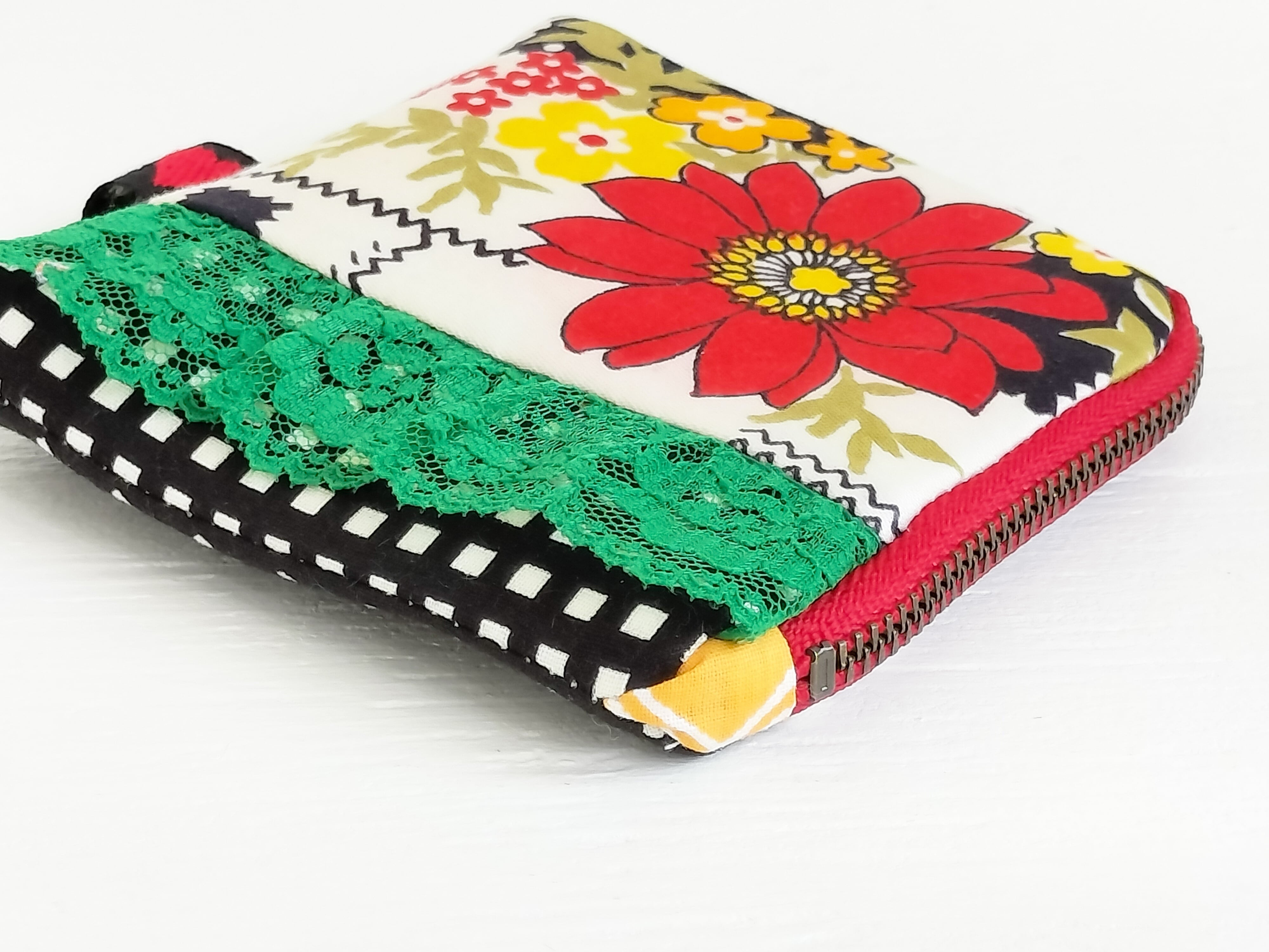 コンパクトなお財布 *ヴィンテージ グリーンのレース*
