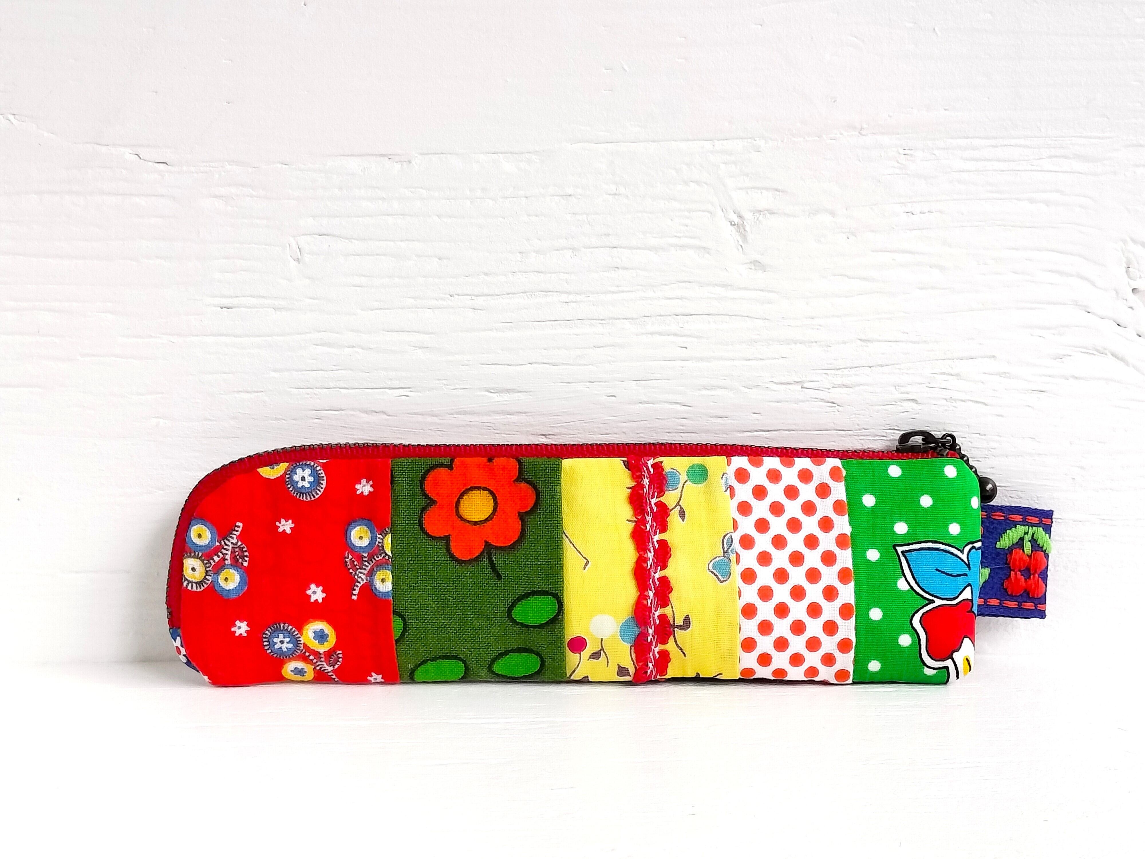 ヴィンテージファブリックを使って、コンパクトで使いやすい、Ⅼ字ファスーのスリムなペンケースを作りました。