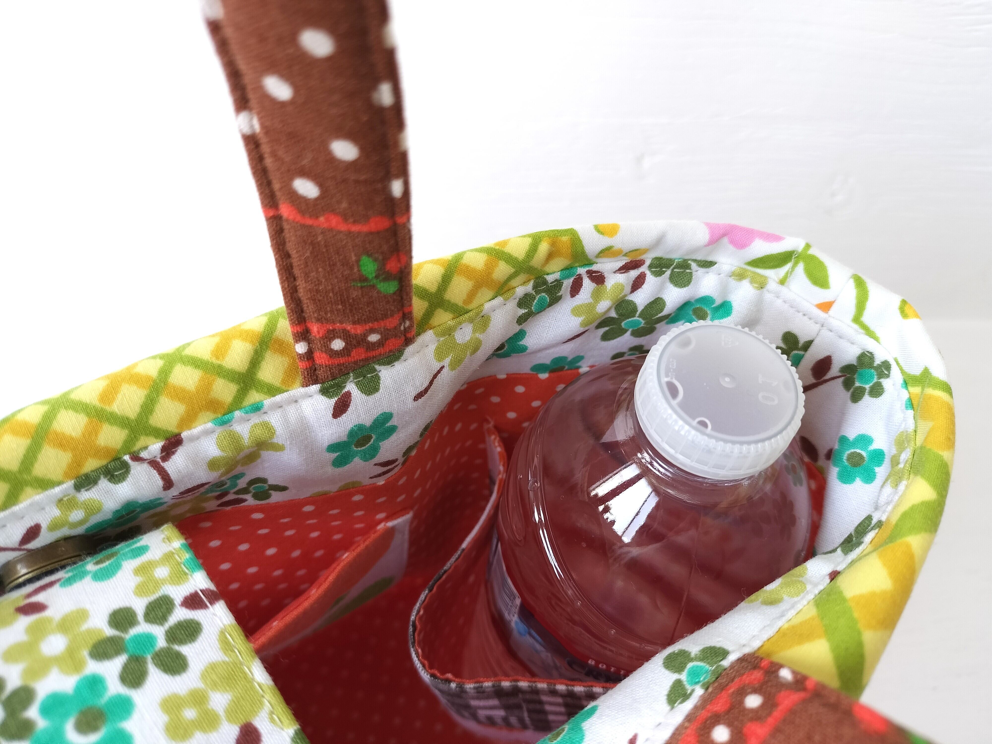 そして今回、バッグの中で水筒やペットボトルが倒れないよう仕切りをつけました。