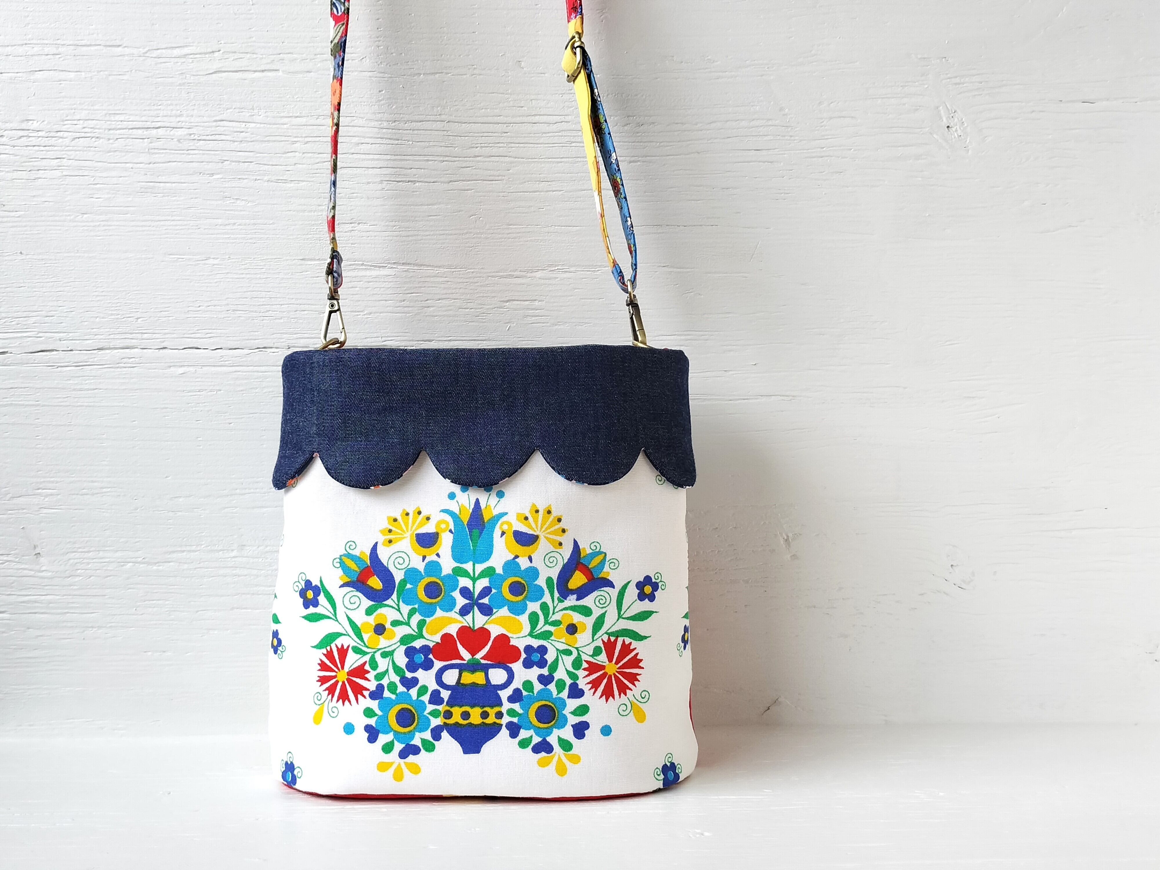 スカラップカフスのショルダーバッグ(持ち手付き) *ヴィンテージ デニム*