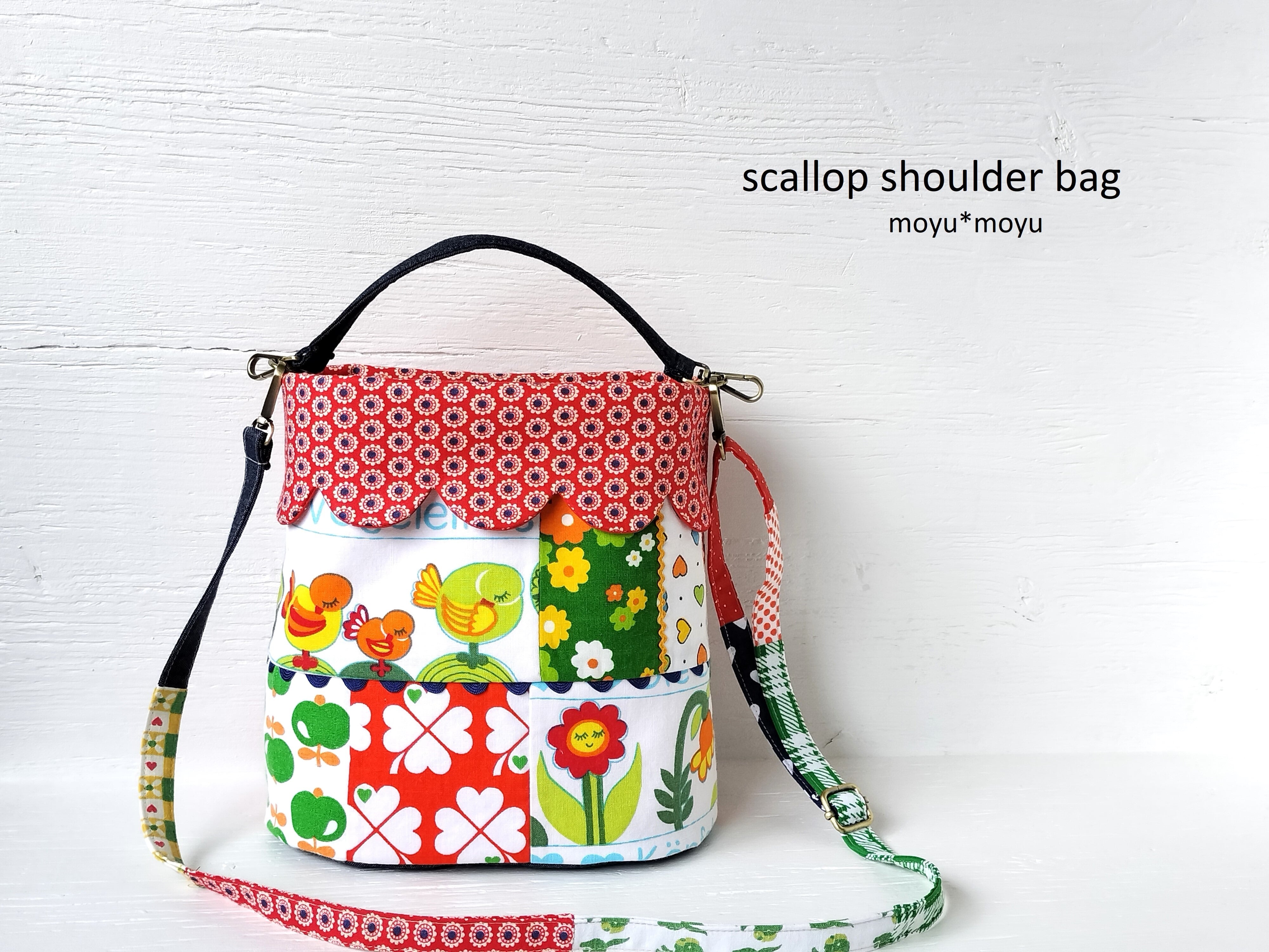 スカラップカフスのショルダーバッグ(持ち手付き) *ヴィンテージ とり*