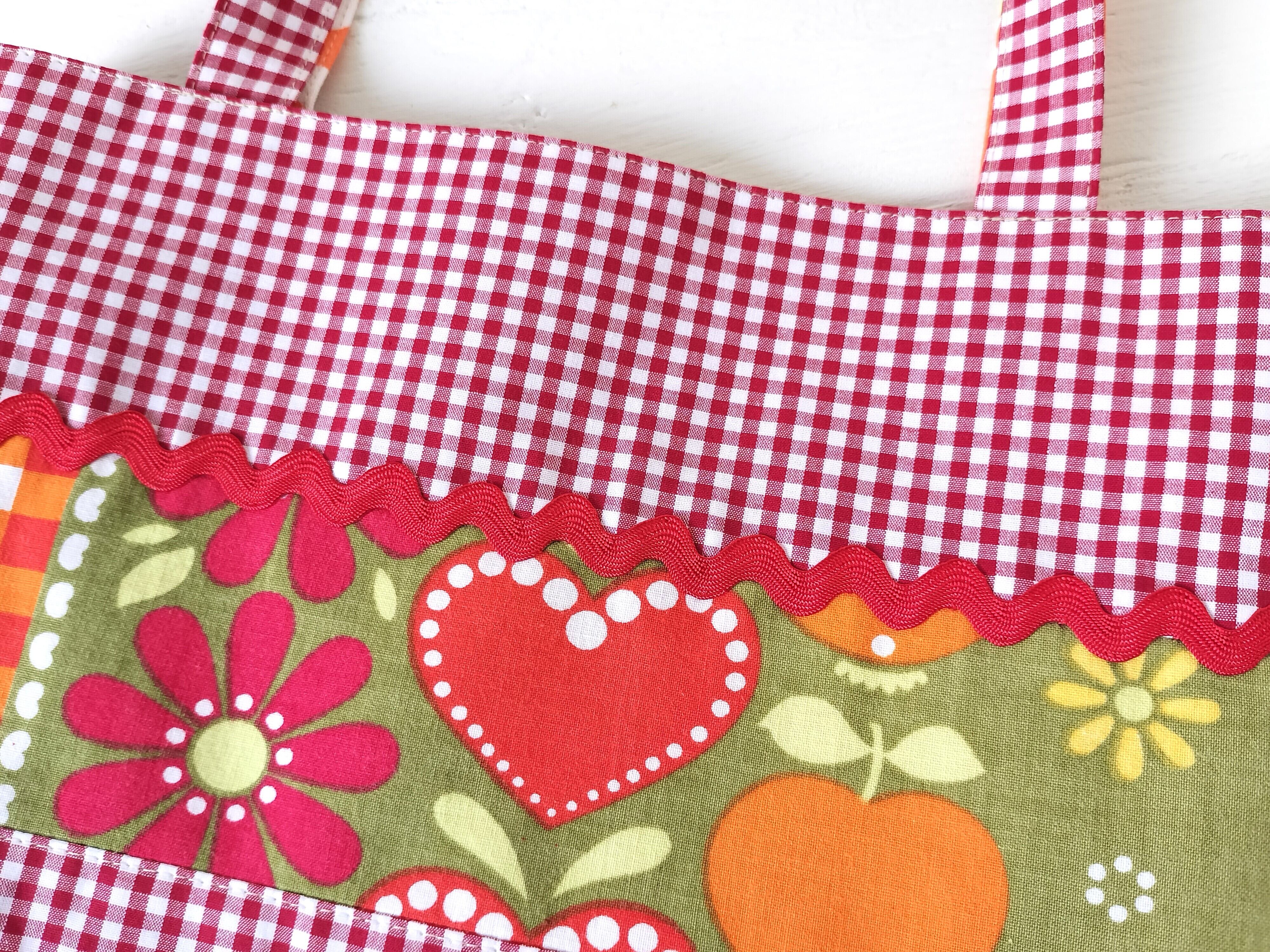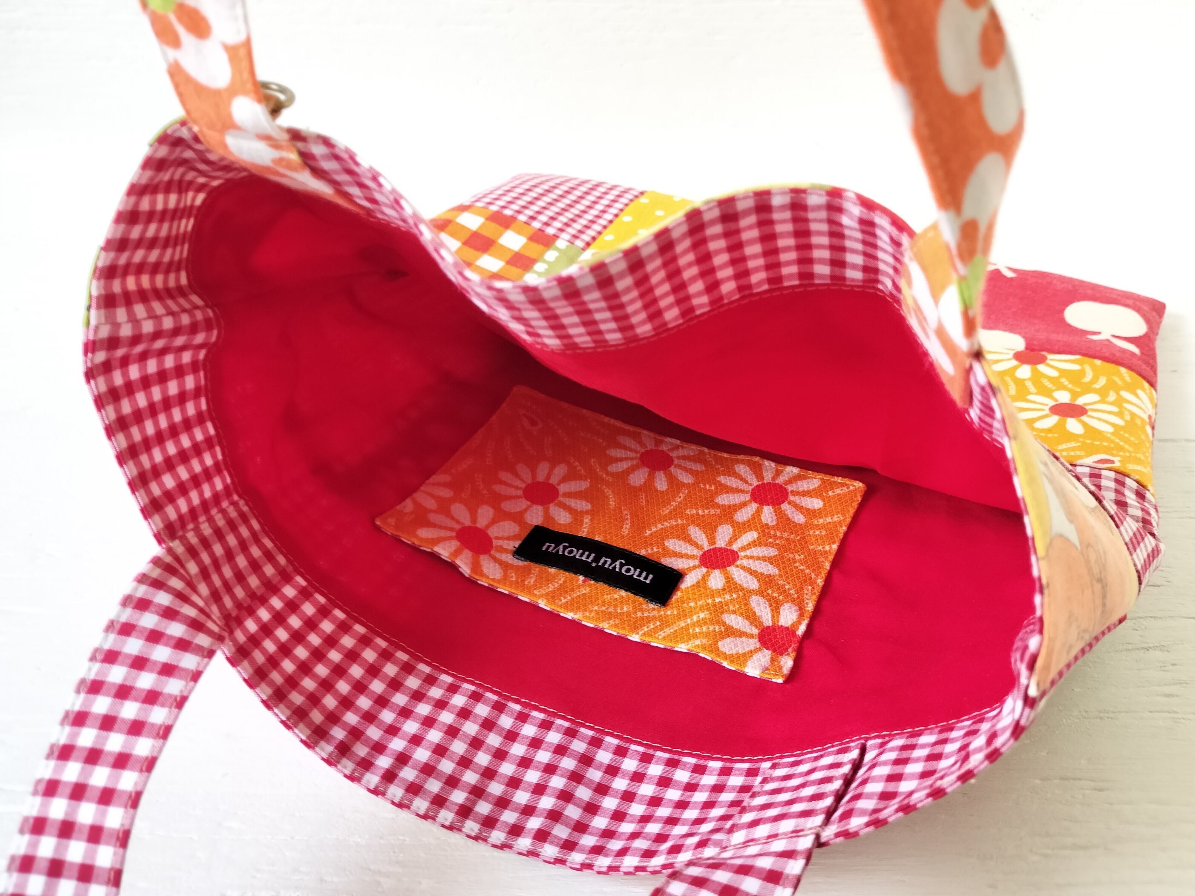 前側は色んな柄をパッチワークし、後ろ側はギンガムチェックメインでヴィンテージファブリックを隙間から覗かせました!