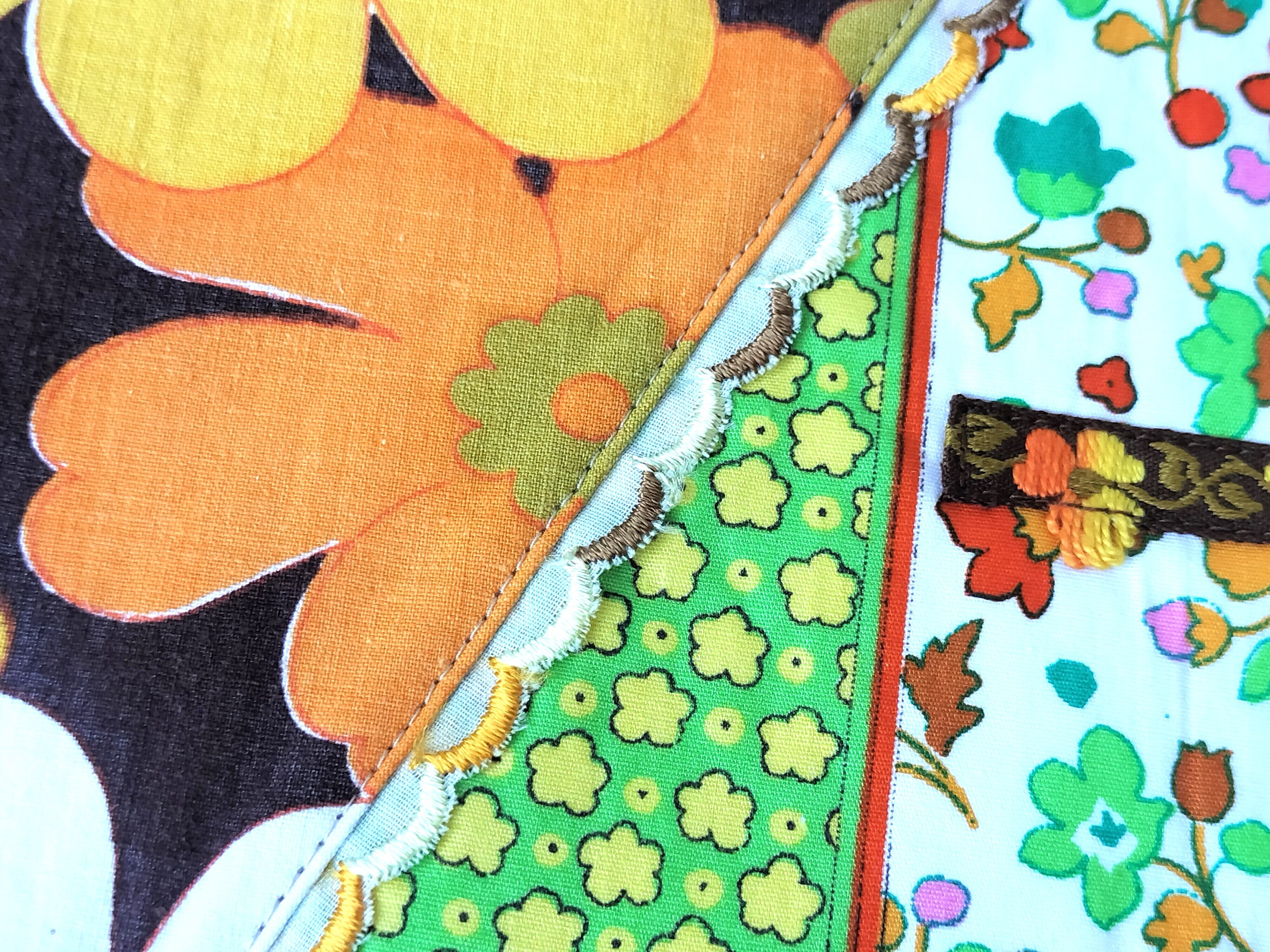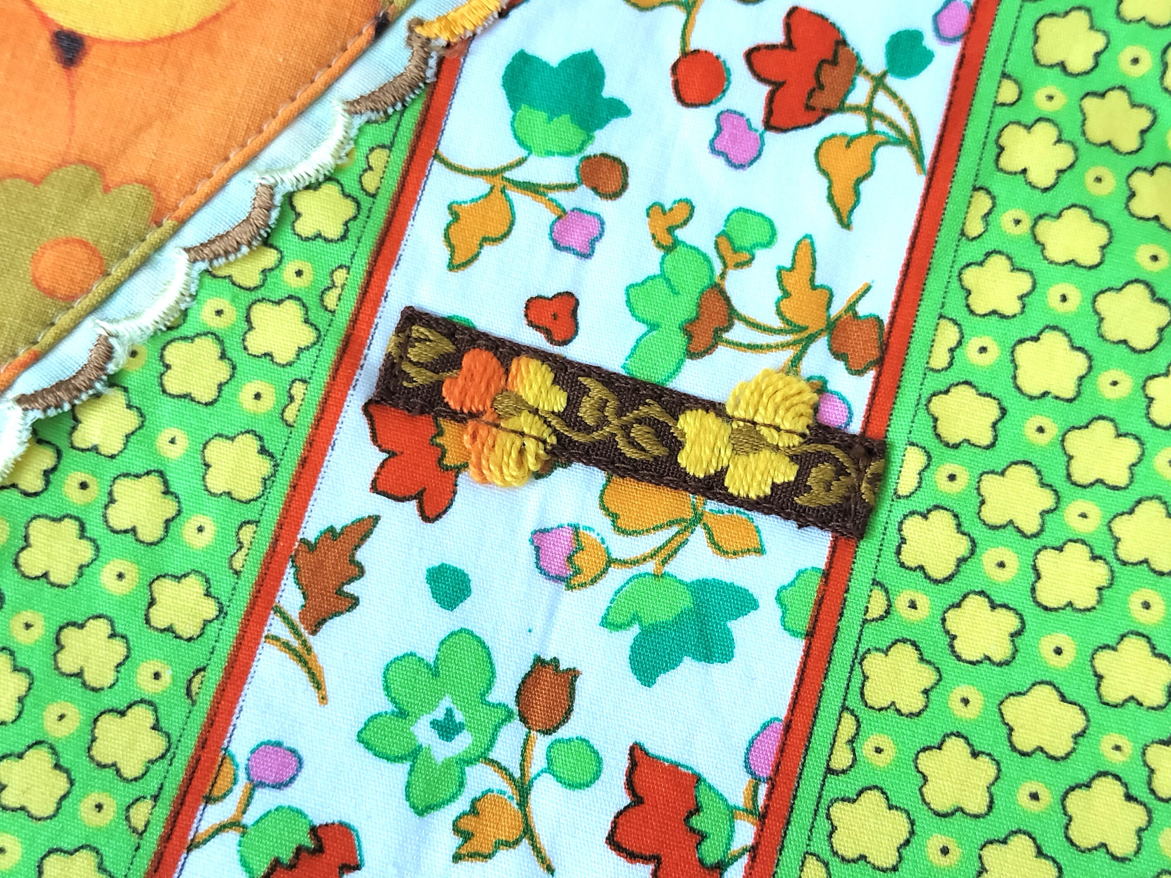 ヨーロッパのヴィンテージファブリックを使った おはなの形のマットです。