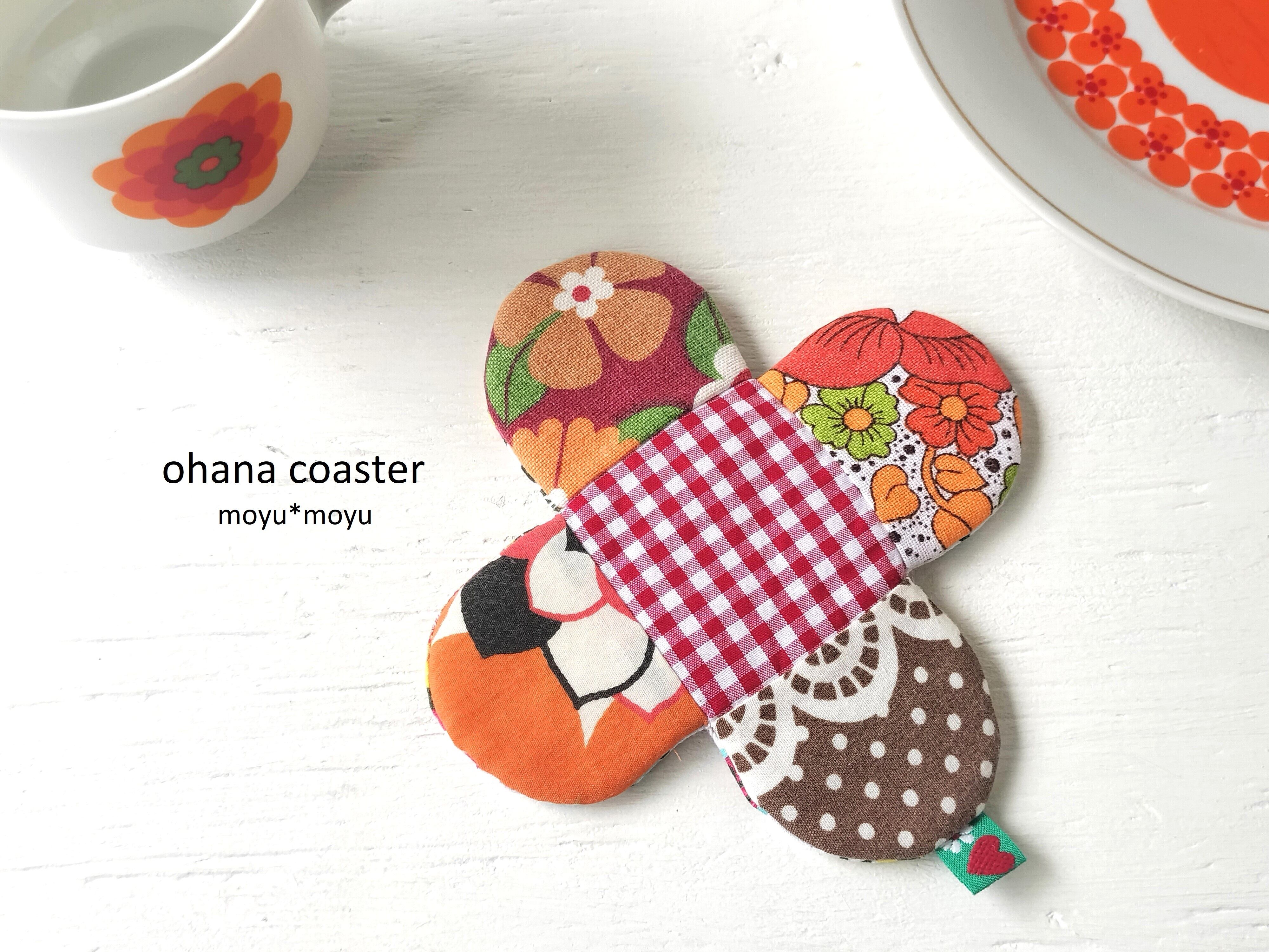 ヴィンテージファブリックを使った お花の形のコースターです♪